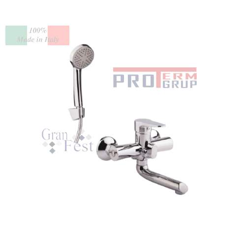 Montat pe perete în două găuri. Complet cu furtun de duș, duș manual și suport. Tehnologia de acoperire special dezvoltată de la producătorul Cosh oferă mixerului un efect de oglindă, strălucitor.