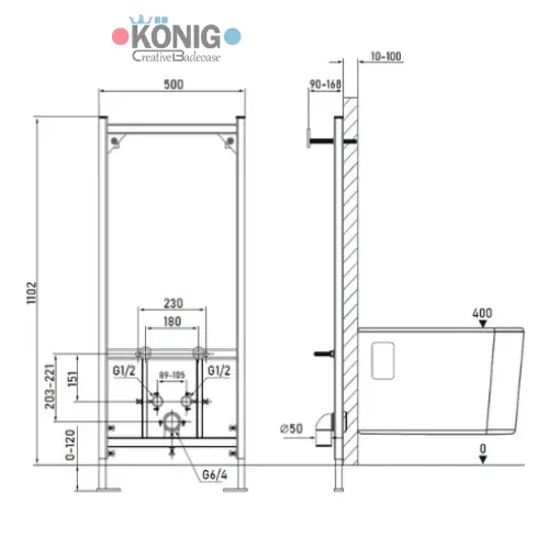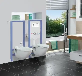 Carcasa pentru bideu Koning este o structura metalica montata pe perete. Cu ajutorul acestuia, puteți efectua instalarea cu ușurință și fără probleme, ceea ce asigură o instalare durabilă și de înaltă calitate.
