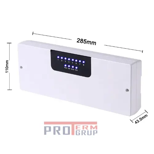 Acest centru de comanda regleaza temperatura pe contur in podea calda. Concomitent puteti instala acest centru de comanda la 8 camere max . Un termostat poate regla temperatura concomitent de la un contur pana la opt. Termostatele lucreaza prin unde radio (nu aveti nevoie sa trageti cablu in fiecare camera ). Temperatura este reglată separat în fiecare cameră . Pentru mai multe informatii in privinta modului de operare ne puteti contacta la nr. +373 60 79 70 79