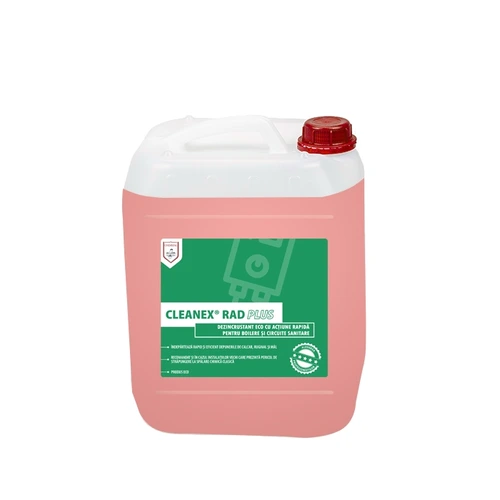 CLEANEX RAD PLUS este o soluție concentrată, organică, acidă și non-toxică, special concepută pentru curățarea sistemelor de încălzire (boilere, circuite sanitare, calorifere din oțel sau fontă). Acționează eficient împotriva depunerilor de piatră, mâl și rugină.