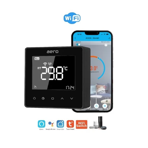Функция Wi-Fi: загрузите приложение на свой телефон и таким образом вы сможете управлять термостатом из любого места и в любое время. Amazon Alexa и Google Home доступны для голосового управления