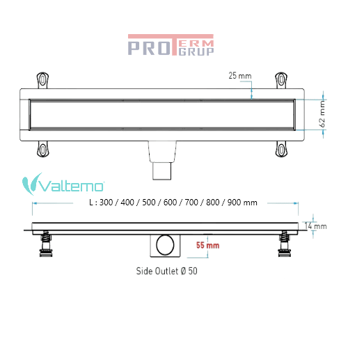 Душевой трап Valtemo Uniqline Side