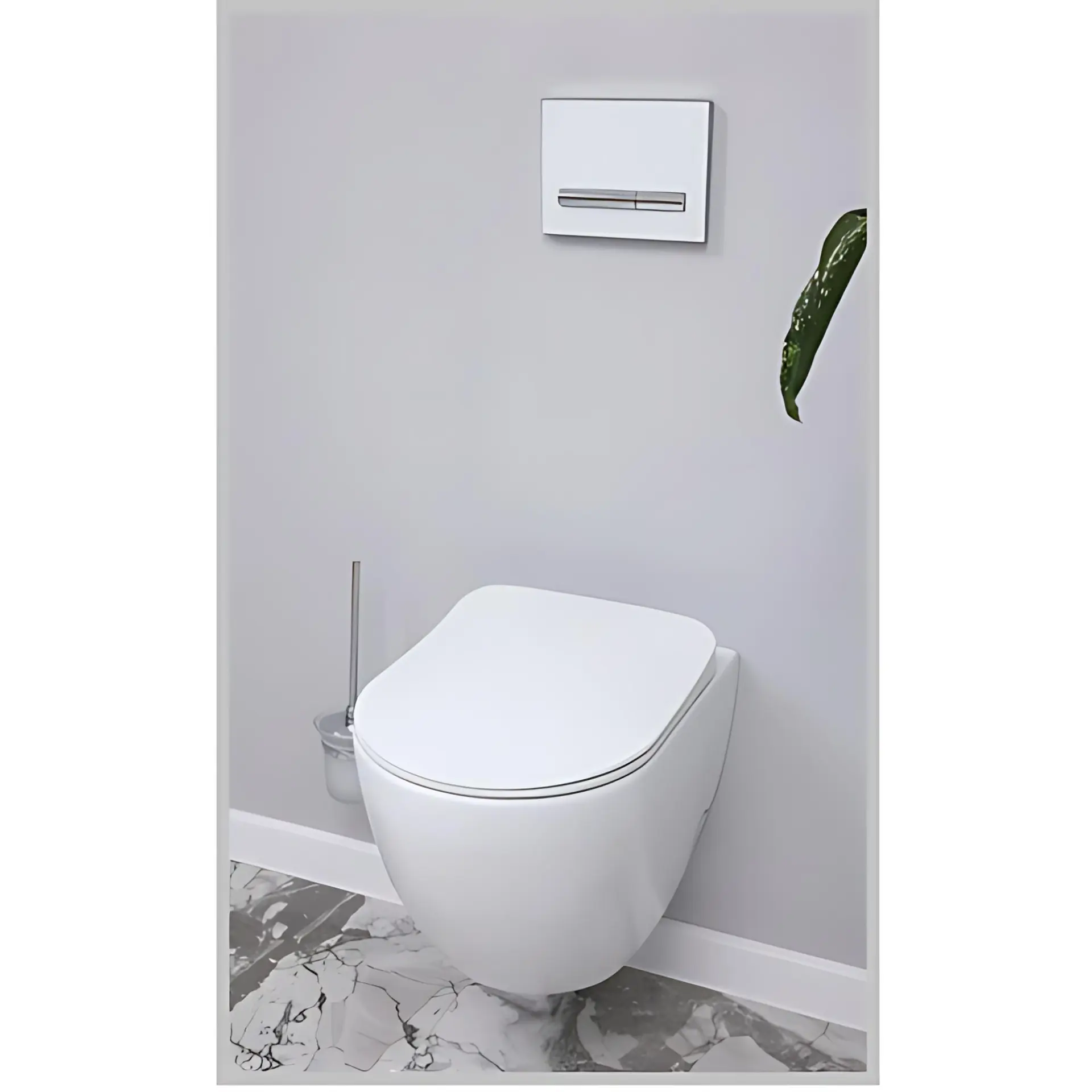 Подвесной унитаз Creavite Free с системой медленного закрытия (микролифт), идеально подходящий для современных ванных комнат. Изготовлена из высококачественной санитарной керамики, имеет элегантный и простой в уходе дизайн. Обеспечивает экономию места и имеет минималистичный вид. Совместимо с большинством встраиваемых рам. Крышка оснащена системой плавного закрытия, обеспечивающей бесшумное и комфортное закрывание.